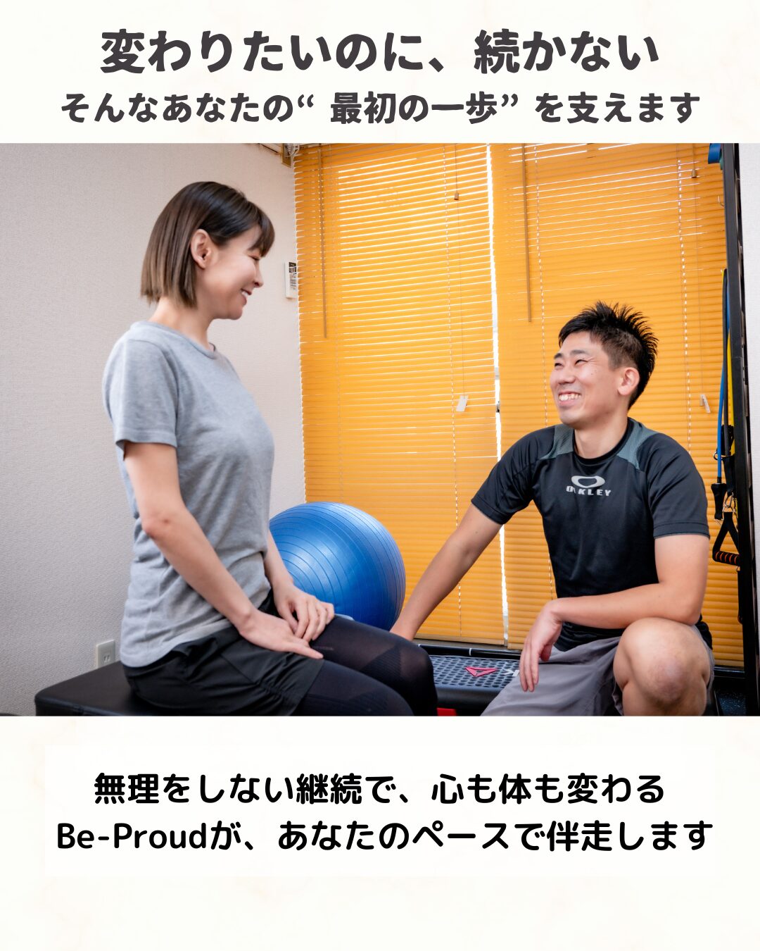 Be-Proudは、無理をせず、あなたのペースで伴走するジム。